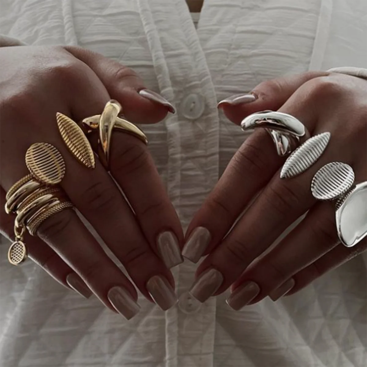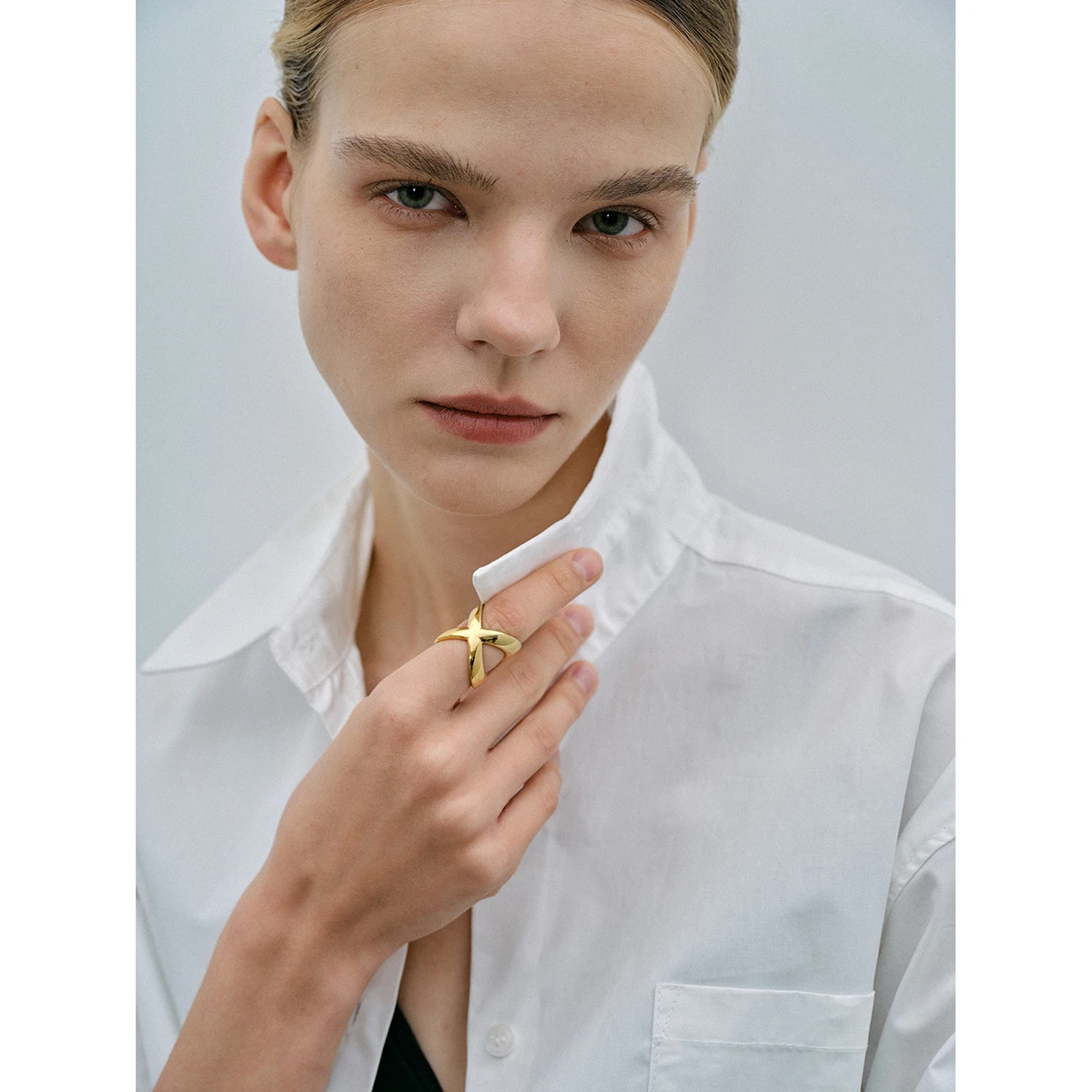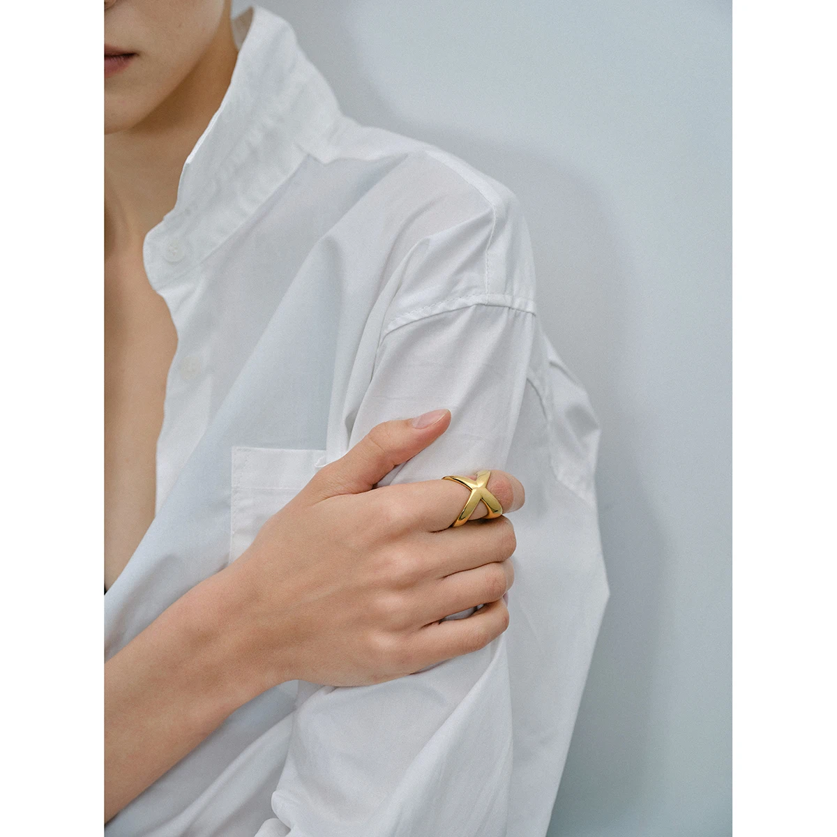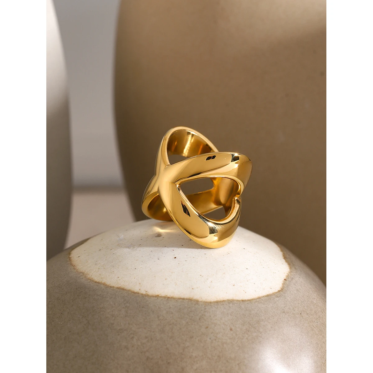Uworld Stainless Steel Metal Overlap Ring Minimalist Fashion Waterproof Trendy Statement Jewelry 18k Gold Plated Bijoux Women