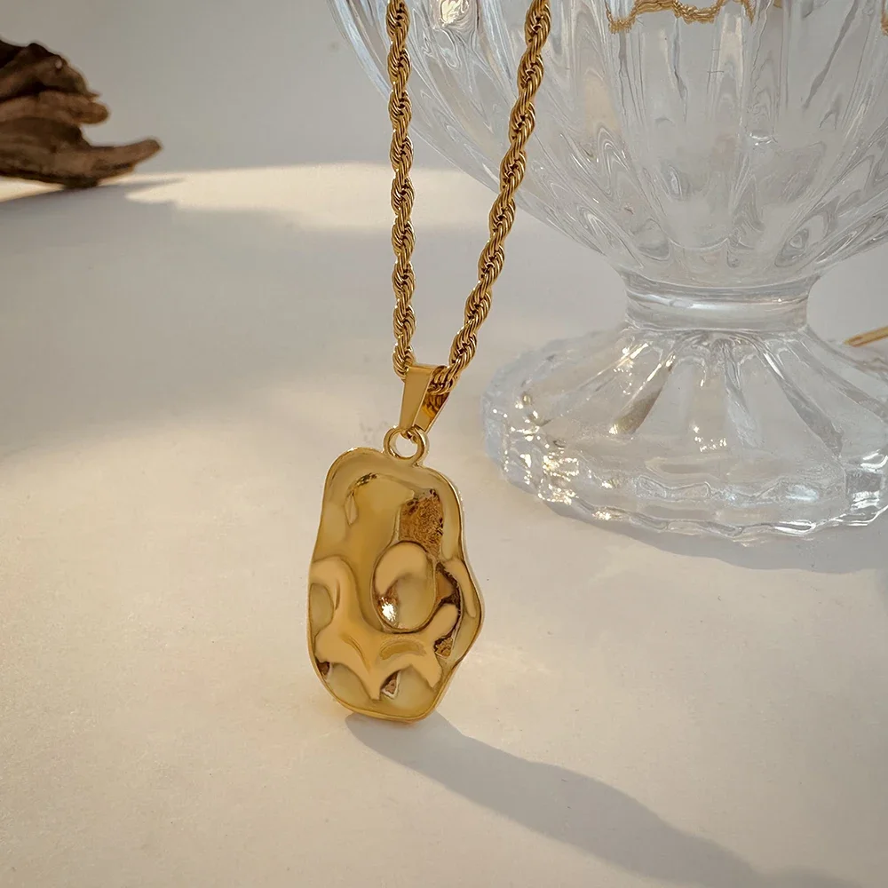 Vintage Moon Star Sun Geometric Pendant Necklaces Gold Plated Stainless Steel Twist Rope Chain Necklace Jewelry for Women Gift