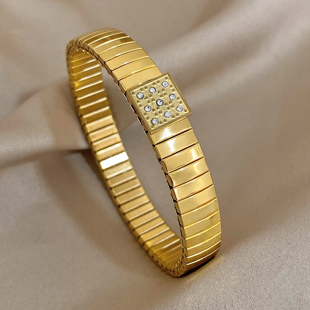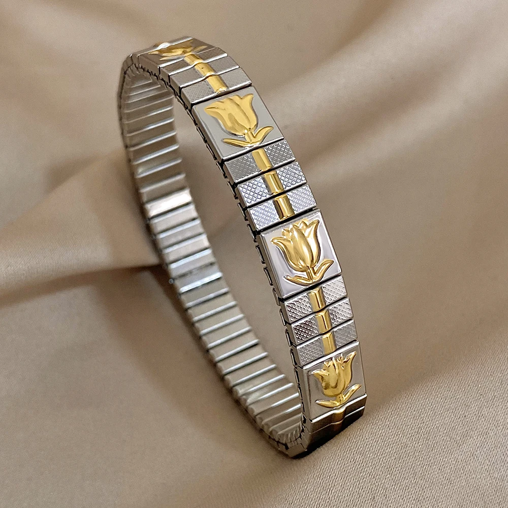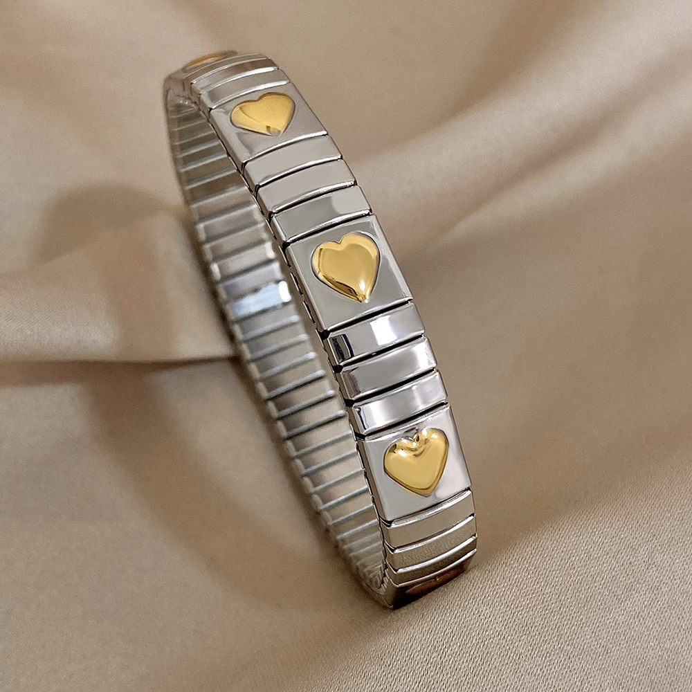 Waterproof Stainless Steel Bangles Bracelet 18k Plated Fashion Jewelry for Women Men Love Heart Flower Square Pattern Jewelry