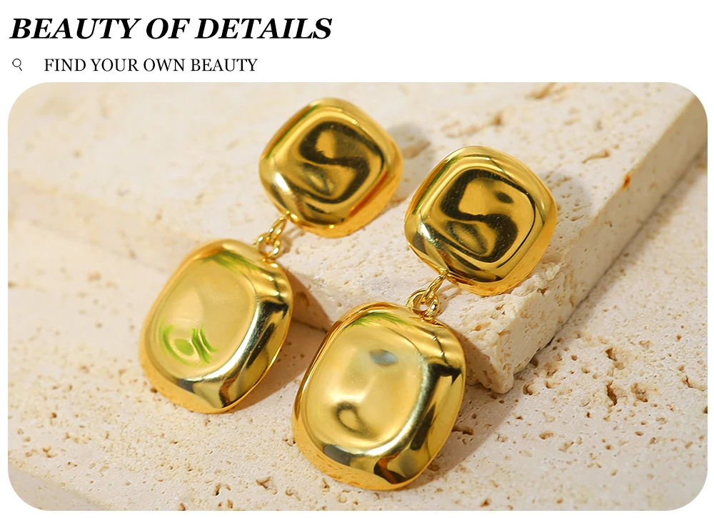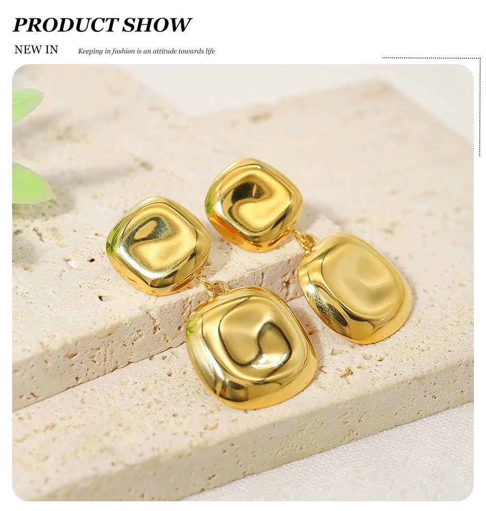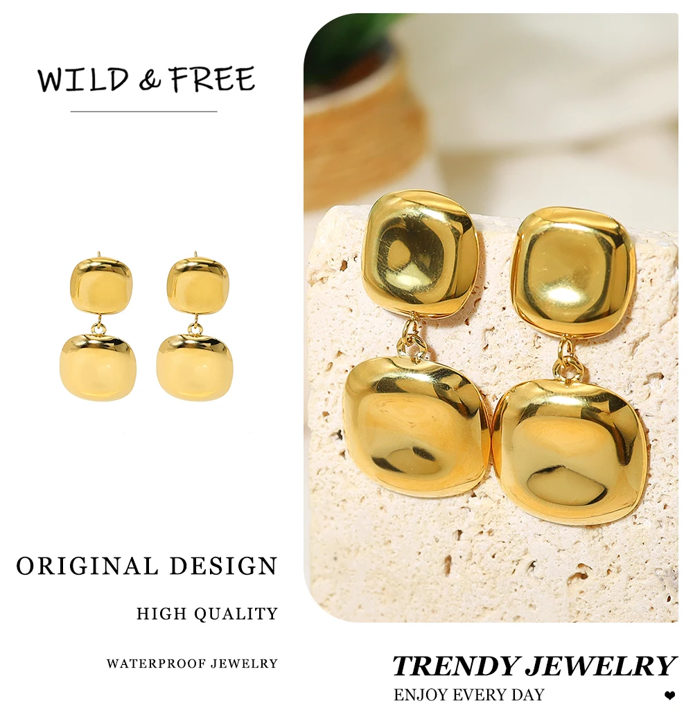 WILD & FREE PVD 18K Gold Plated Stainless Steel Drop Earrings for Women Vintage Chic Trendy Jewelry Waterproof
