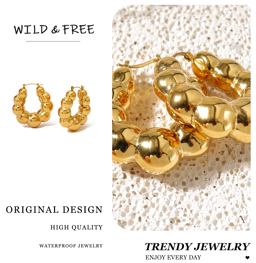 WILD & FREE Stainless Steel Hoop Earrings for Women Statement Chunky 18K Gold Plated Metal Trendy Jewelry Waterproof