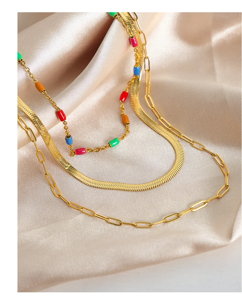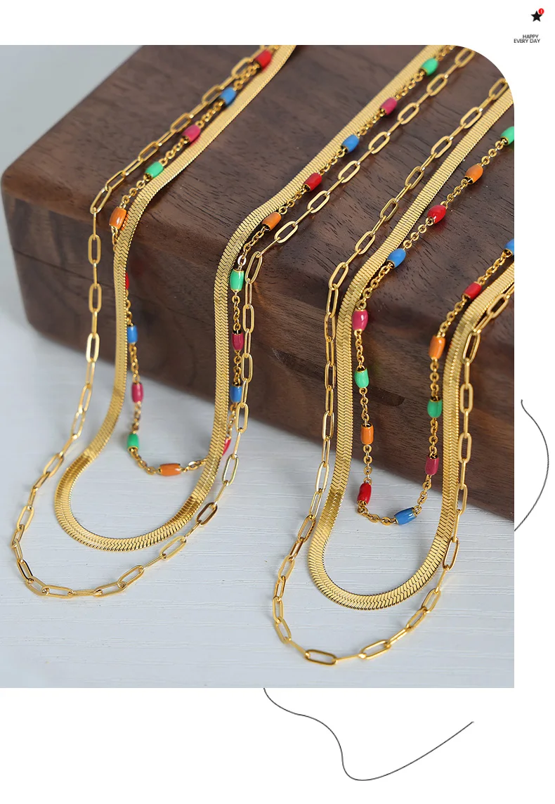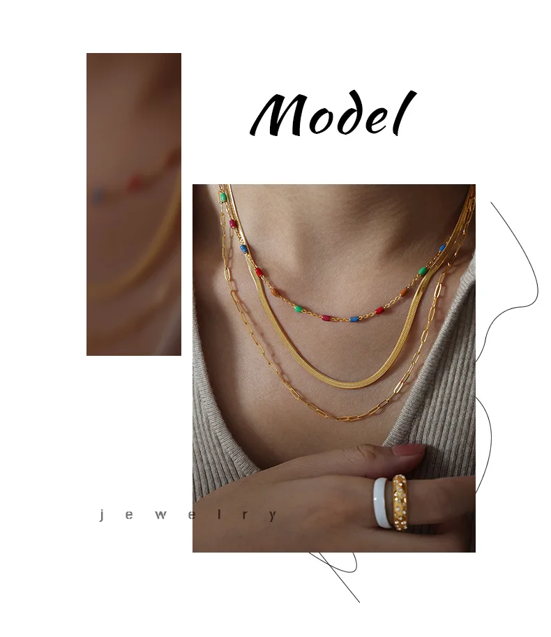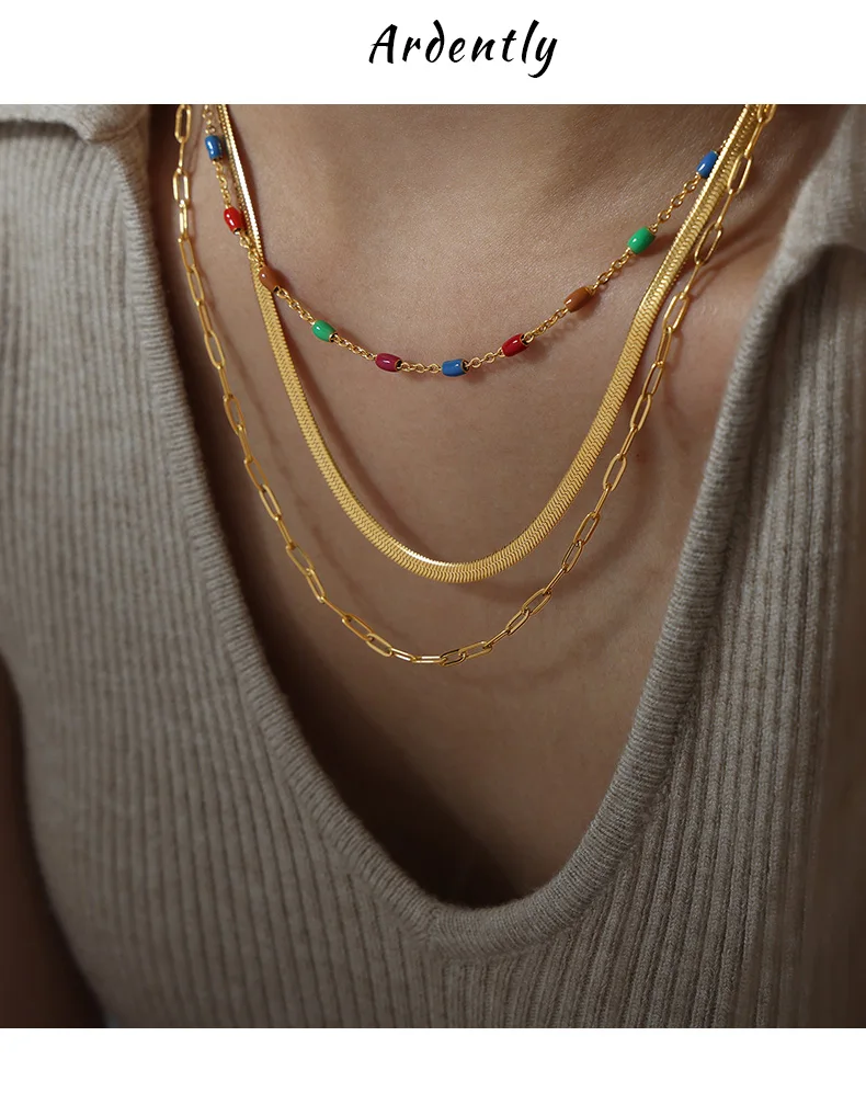 Women Stainless Steel 3-Layer Necklace Colorful Oil Dropping Chain Hip Hop Style Accessories Girls' Fashion Jewelry Gift