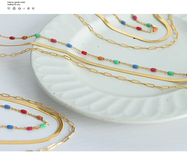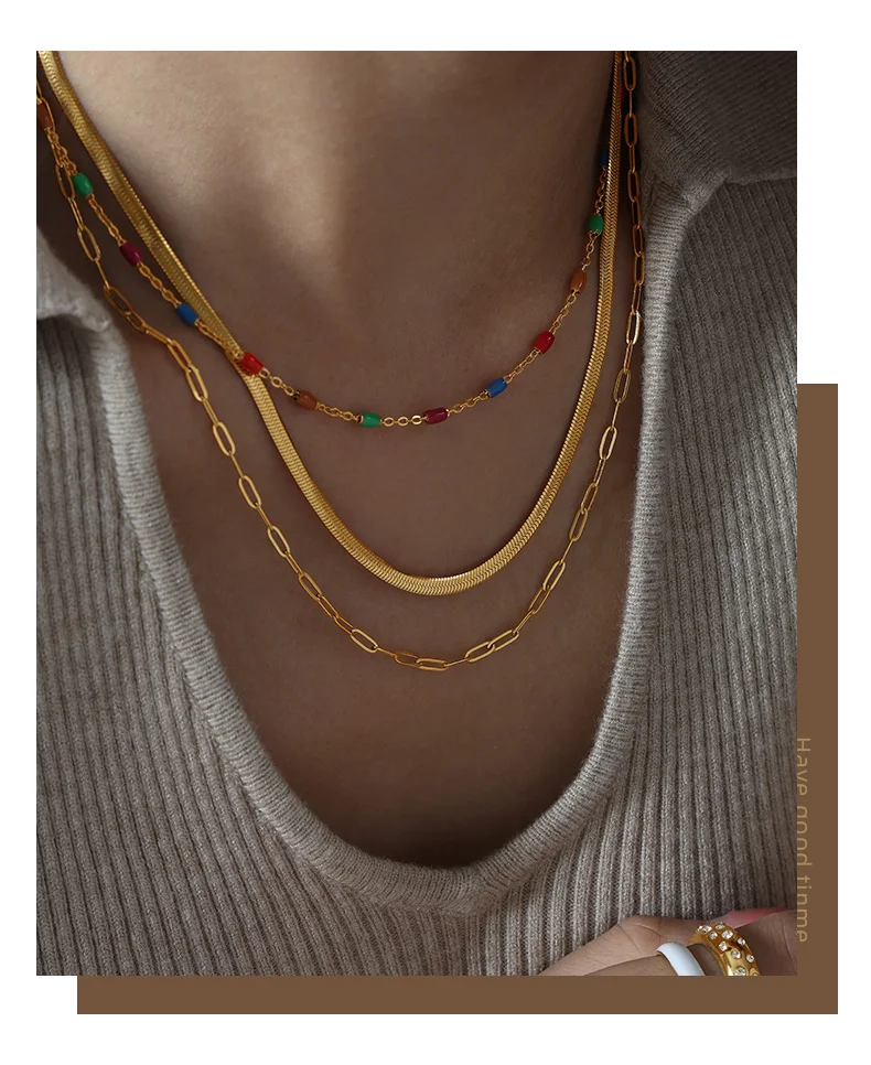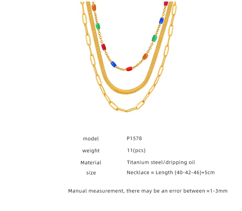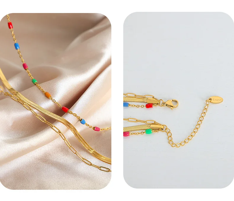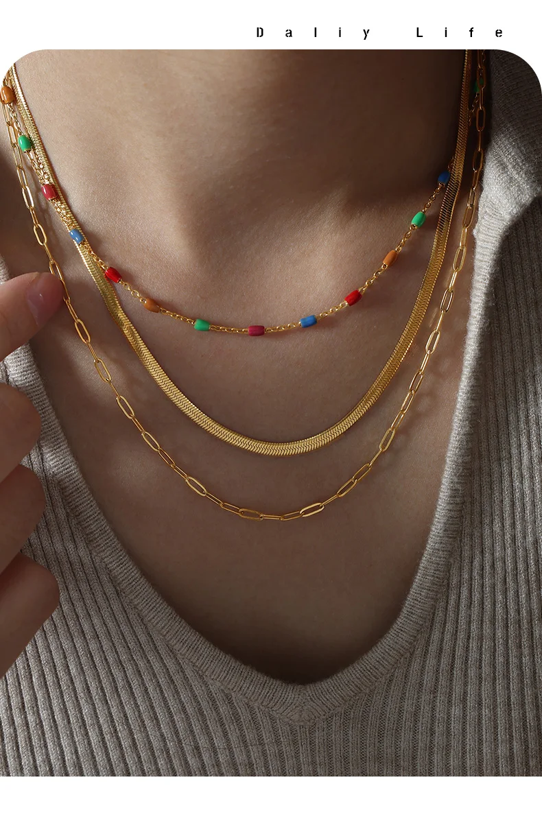 Women Stainless Steel 3-Layer Necklace Colorful Oil Dropping Chain Hip Hop Style Accessories Girls' Fashion Jewelry Gift