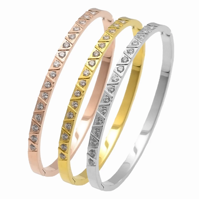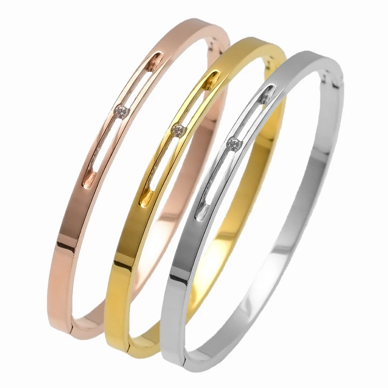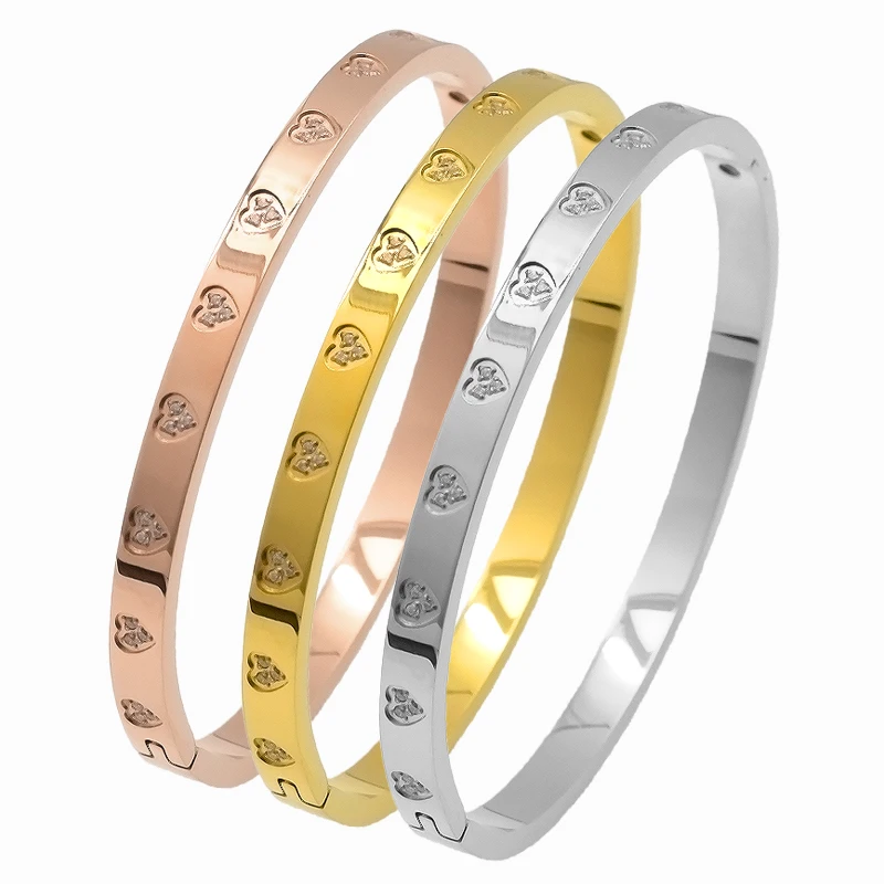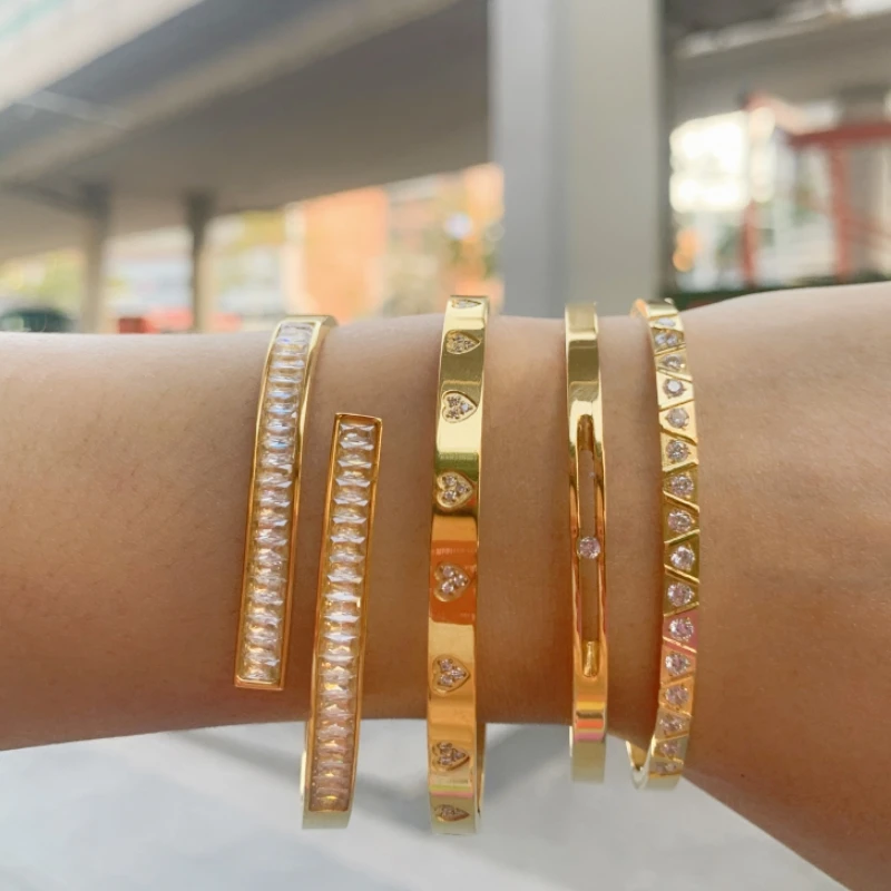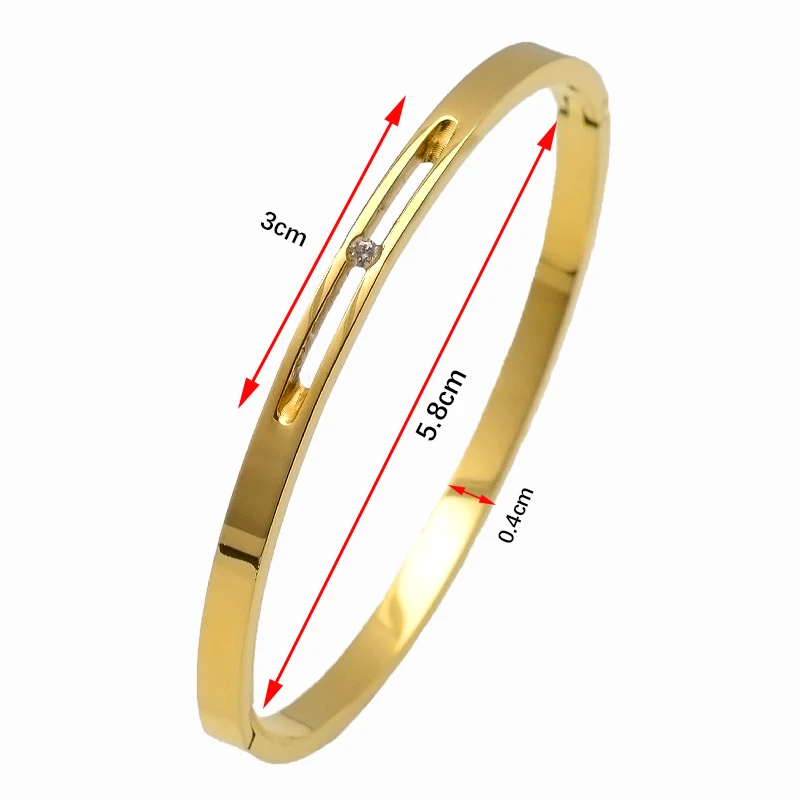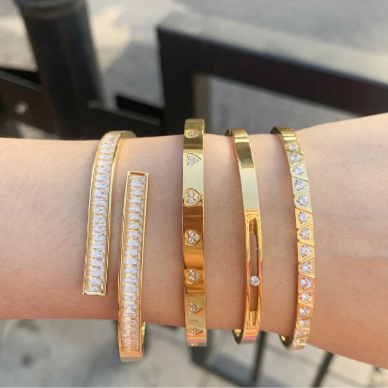 Item:ZALMAN Love Heart Rhinestone Thin Bangle Geometry U Bracelet Gold Color Stainless Steel Bangle for Women Classic Brand Jewelry